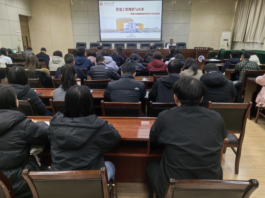 會(huì)上,張驍勇對(duì)全院師生從專業(yè)視角分別按照油氣儲(chǔ)運(yùn)、安全工程、土木工程三個(gè)方向各提出三點(diǎn)希望:一是“鑄魂”,重塑課程思政新內(nèi)涵。對(duì)于油氣儲(chǔ)運(yùn)專業(yè),要在講授“全國(guó)一張網(wǎng)”格局、跨國(guó)管道戰(zhàn)略意義時(shí),深刻揭示其對(duì)于國(guó)家能源自主、地緣政治博弈的核心價(jià)值,培養(yǎng)學(xué)生作為 “國(guó)家能源系統(tǒng)調(diào)度師” 的格局與擔(dān)當(dāng)。對(duì)于土木工程專業(yè),要在講授管道穿跨越工程、地質(zhì)災(zāi)害防治時(shí),弘揚(yáng) “攻堅(jiān)克難、打造不朽工程” 的工匠精神,將“隱蔽工程、百年品質(zhì)”的職業(yè)倫理深植學(xué)生心中。對(duì)于安全工程專業(yè),要深刻闡釋管道安全是 “總體國(guó)家安全觀”在能源領(lǐng)域的具體體現(xiàn),將安全職責(zé)從“避免生產(chǎn)事故”提升到 “捍衛(wèi)國(guó)家經(jīng)濟(jì)生命線和公共安全” 的崇高境界;二是“強(qiáng)技”,更新知識(shí)與能力體系。對(duì)于油氣儲(chǔ)運(yùn)專業(yè),教學(xué)重點(diǎn)要從“工藝設(shè)計(jì)”向 “系統(tǒng)優(yōu)化” 和 “智能決策” 轉(zhuǎn)變,培養(yǎng)學(xué)生運(yùn)用大數(shù)據(jù)和AI工具解決復(fù)雜管網(wǎng)問題的能力。對(duì)于土木工程專業(yè),要教導(dǎo)學(xué)生不僅關(guān)注“如何建得成”,更要思考“如何建得智能、如何感知自身狀態(tài)”。對(duì)于安全工程專業(yè),要教授基于大數(shù)據(jù)和人工智能的風(fēng)險(xiǎn)預(yù)測(cè)預(yù)警、基于數(shù)字孿生的應(yīng)急推演與決策、復(fù)雜系統(tǒng)韌性評(píng)估等現(xiàn)代安全工程方法;三是“力行”,創(chuàng)新教學(xué)與科研實(shí)踐。對(duì)于油氣儲(chǔ)運(yùn)專業(yè),要開發(fā)基于數(shù)字孿生的管網(wǎng)模擬仿真教學(xué)平臺(tái),讓學(xué)生在人機(jī)互動(dòng)中學(xué)習(xí)智能調(diào)度,主動(dòng)對(duì)接國(guó)家管網(wǎng)“七大方向”,在摻氫輸送、大型管網(wǎng)仿真軟件自主化等關(guān)鍵領(lǐng)域開展應(yīng)用型研究。對(duì)于土木工程專業(yè),繼續(xù)推廣BIM與 GIS在管道設(shè)計(jì)課程中的深度融合應(yīng)用,聚焦管道新型材料、高效智能建造技術(shù)等領(lǐng)域,推動(dòng)科研成果向工程標(biāo)準(zhǔn)和教學(xué)案例轉(zhuǎn)化。對(duì)于安全工程專業(yè),要利用虛擬現(xiàn)實(shí)技術(shù)構(gòu)建管道泄漏、地質(zhì)災(zāi)害、網(wǎng)絡(luò)攻擊等沉浸式應(yīng)急演練場(chǎng)景。圍繞國(guó)家管網(wǎng)“本質(zhì)安全”方向,在管道裂紋智能識(shí)別與生長(zhǎng)預(yù)測(cè)、多災(zāi)害耦合致災(zāi)機(jī)理、系統(tǒng)安全彈性恢復(fù)等前沿領(lǐng)域開展研究,為行業(yè)提供先進(jìn)的理論和工具支持。