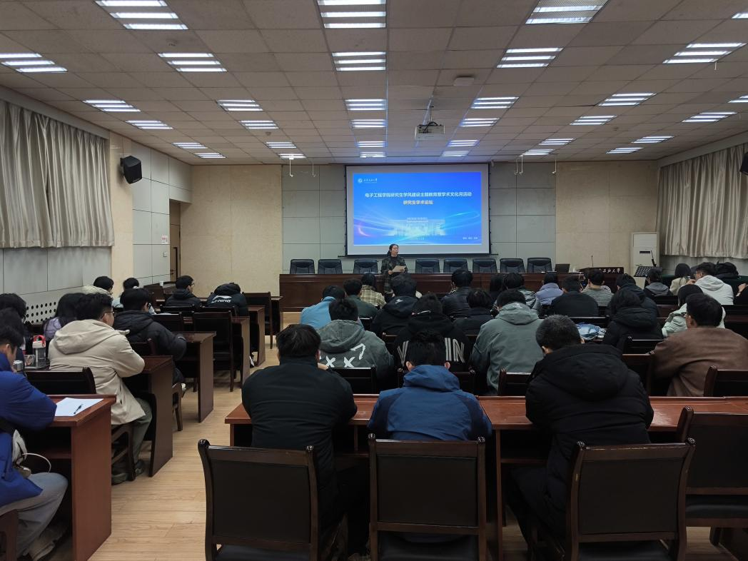 按照學校研究生工作部關(guān)于2025年研究生學風建設(shè)暨學術(shù)文化活動月的安排部署,12月16日至23日,電子工程學院2025年研究生學風建設(shè)暨學術(shù)文化月之研究生學術(shù)論壇在雁塔校區(qū)會議中心第三會議室順利舉行。學院副院長楊一、研究生輔導員李君、王曉天以及各年級研究生代表參會,我院11位研究生代表作專題學術(shù)匯報。
