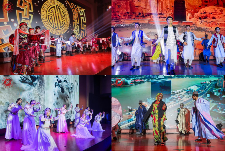 晚會在哈薩克斯坦、印尼、吉爾吉斯斯坦、烏干達四國學(xué)生多語宣告中拉開帷幕。整場演出涵蓋舞蹈、合唱、時尚秀、小品等類別節(jié)目,精彩紛呈、高潮迭起。蒙古傳統(tǒng)舞蹈剛勁豪邁,阿富汗特色舞姿靈動曼妙,合唱《喀秋莎》喚醒經(jīng)典記憶;25國50余名學(xué)子帶來的“Gala of Style”時尚秀上,各國服飾輪番亮相,展現(xiàn)多元文化的獨特魅力;巴基斯坦地方舞蹈活力四射,合唱《我的歌聲里》溫柔繾綣,中亞舞蹈串燒節(jié)奏明快,小品《重生之我在西安學(xué)漢語》引得全場笑語不絕;教職工代表帶來的舞蹈《五哥放羊》韻味悠長,展現(xiàn)師者風(fēng)采;孟加拉國獨唱《Almost is Never Enough》情感飽滿,非洲五國舞蹈串燒則熱情似火;預(yù)科班學(xué)子合唱的《愛》傳遞溫暖情誼,隨后的多人舞蹈《旋舞萬方》更是靈動翩躚;孟加拉國傳統(tǒng)舞蹈風(fēng)情濃郁,盡顯文化交融之美;最后,全場共同唱響《We Are the World》,晚會在溫馨熱烈的氛圍中圓滿落幕。