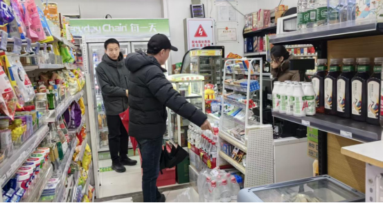 上午10時,由副校長蘇文甫帶隊,檢查組一行從鄠邑校區(qū)東體育場出發(fā),按照既定路線依次對松林超市、東區(qū)學(xué)生食堂區(qū)域商戶、綜合服務(wù)一條街商戶、源動力街區(qū)商戶、菜鳥驛站、西區(qū)綜合樓區(qū)域商戶、大學(xué)生超市、圖書館閱悅咖啡等場所進行全面檢查。檢查組重點圍繞消防安全、用電用氣安全、食品安全、環(huán)境衛(wèi)生及環(huán)保等關(guān)鍵領(lǐng)域展開,細致核查消防設(shè)施配置與有效性、消防通道暢通情況,重點排查私拉亂接、超負荷用電、飛線充電等違規(guī)用電行為,嚴格檢驗燃氣管道閥門完好性及泄漏報警裝置安裝情況;同時對餐飲商戶的《食品經(jīng)營許可證》、從業(yè)人員健康證明、食品采購貯存加工流程、餐具清洗消毒及防蠅防鼠防塵設(shè)施進行逐一核驗,同步檢查物品堆放、油煙凈化、排污降噪及垃圾清理等環(huán)保相關(guān)工作,特別關(guān)注新商戶裝修改造中出現(xiàn)的安全隱患。此外,檢查組還查看了菜鳥驛站的運行情況,確保假期物流服務(wù)安全有序。