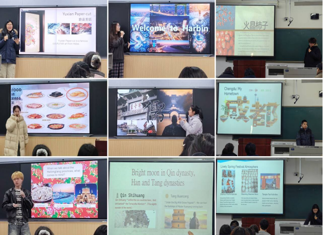 本次口語考核學生需圍繞家鄉(xiāng)的地理位置、特色景觀、民俗文化、發(fā)展變遷等核心要素展開表達,既需清晰傳遞信息,更要展現(xiàn)對家鄉(xiāng)的情感聯(lián)結與文化理解。從考試反饋來看,學生紛紛化身“家鄉(xiāng)文化代言人”,有的用英語介紹非遺技藝的傳承脈絡,有的講述家鄉(xiāng)生態(tài)發(fā)展的轉型故事,有的推薦特色飲食背后的民俗內涵,在展現(xiàn)語言能力的同時傳遞鄉(xiāng)土情懷,打破了傳統(tǒng)口語表達的模板化困境。