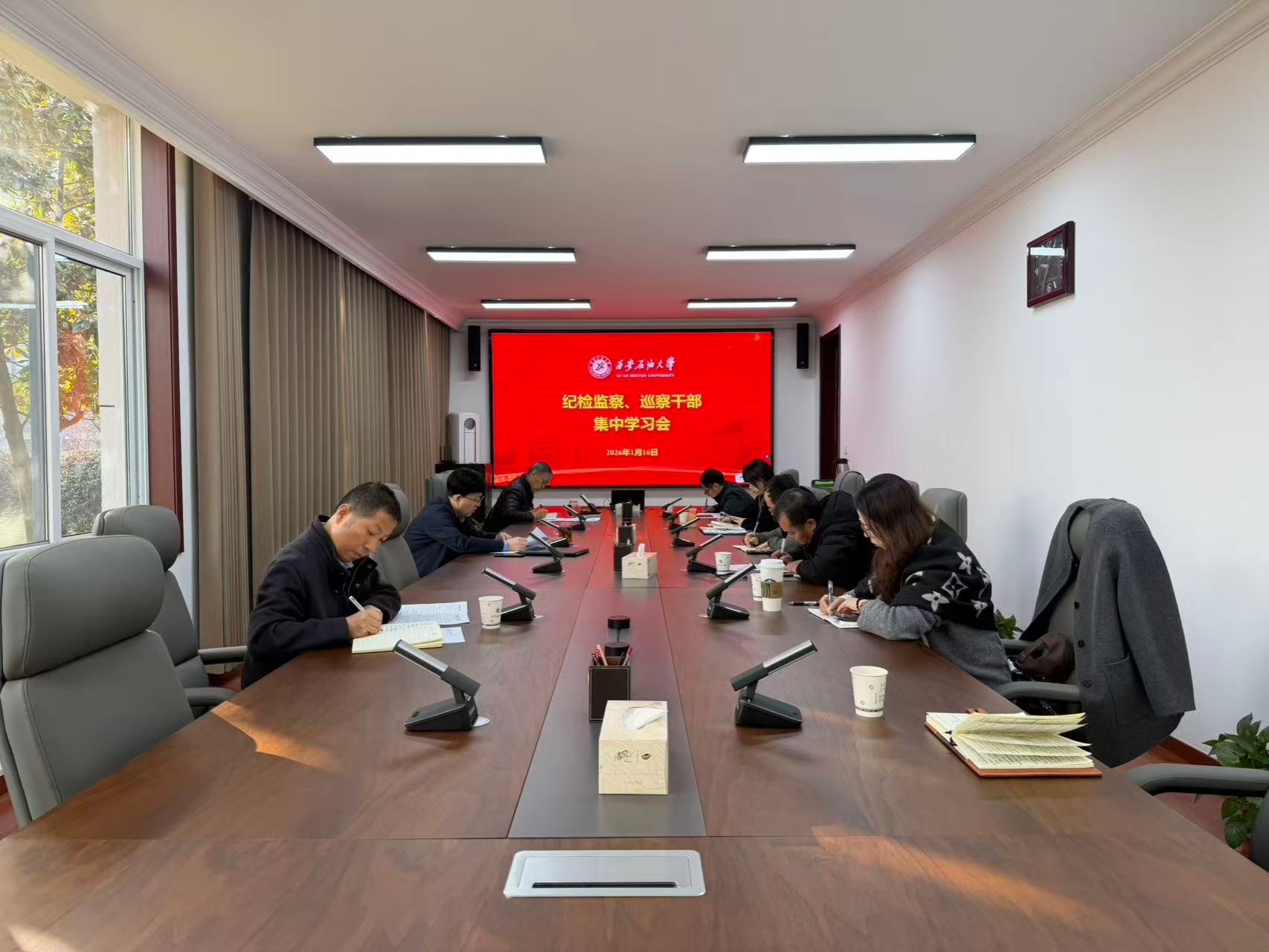 1月16日上午,紀(jì)檢巡察干部2026年第1次集中學(xué)習(xí)會在鄠邑校區(qū)辦公樓第五會議室召開。校黨委副書記、紀(jì)委書記、監(jiān)察專員王輝強主持學(xué)習(xí)會。紀(jì)檢監(jiān)察機構(gòu)、黨委巡察工作辦公室全體干部參加會議。