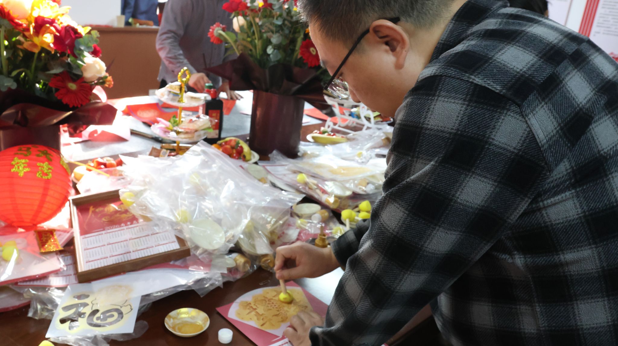 “揮毫迎春,舞墨送?!杯h(huán)節(jié)中,邀請知名書家現(xiàn)場揮毫潑墨,為教職工書寫寓意美好的新春對聯(lián),一筆一畫間承載著濃濃的新春祝福與文化底蘊(yùn),引得大家紛紛駐足領(lǐng)取。