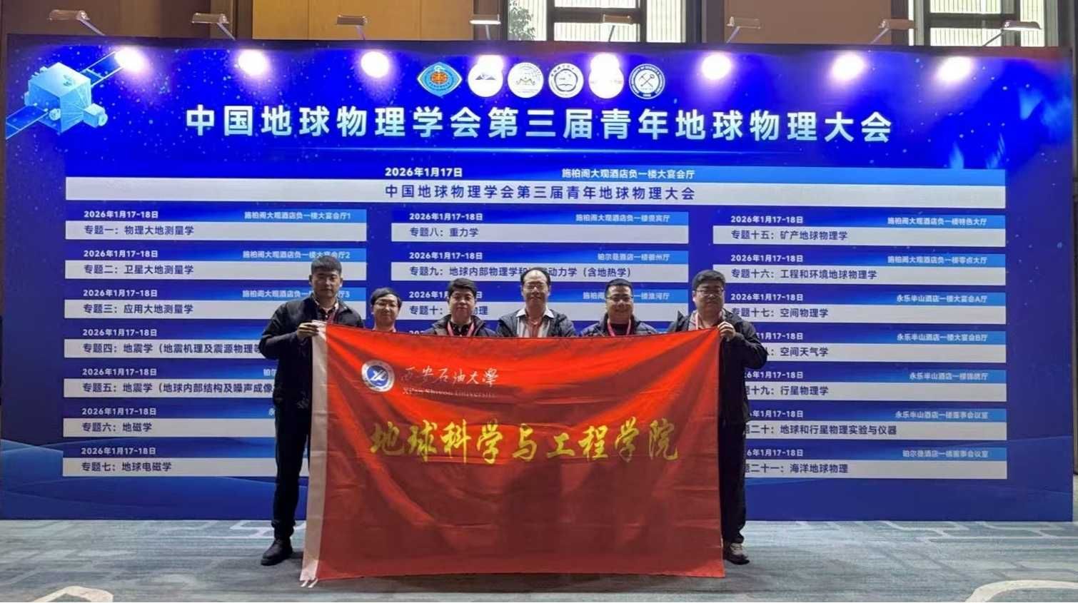2026年1月16日至19日,第三屆青年地球物理大會(huì)在安徽合肥隆重舉行,本屆大會(huì)吸引了來(lái)自全球60多家單位的800多名頂尖專家和青年學(xué)者參加。我校地球科學(xué)與工程學(xué)副院長(zhǎng)院曹靜杰教授帶領(lǐng)7位青年教師集體參加了本次大會(huì)。曹靜杰教授作為專題召集人組織了第十六專題,應(yīng)用地球物理系青年教師馮旭亮、李萌、楊飛龍、李欣欣、魯愷、楊文強(qiáng),分別在地球電磁學(xué)、重力學(xué)、地磁學(xué)、工程和環(huán)境地球物理學(xué)、油氣測(cè)井與儲(chǔ)層評(píng)價(jià)、地震波場(chǎng)成像方法及技術(shù)、儲(chǔ)層識(shí)別與參數(shù)反演等專題作學(xué)術(shù)報(bào)告7場(chǎng),展現(xiàn)了我校地球物理領(lǐng)域青年教師在相關(guān)領(lǐng)域的科研進(jìn)展與風(fēng)采。