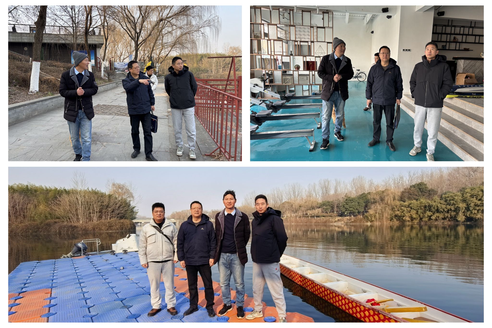 在長安賽艇俱樂部,雙方就水上運動項目的推廣普及、專業(yè)賽艇訓練、學生水上項目技能培訓與實習實踐基地建設等進行了深入探討。劉小波表示,希望能利用此次走訪契機繼續(xù)深化校企合作基礎,進一步把握社會體育行業(yè)的需求和發(fā)展的前沿動態(tài),為優(yōu)化學生培養(yǎng)方案、提升人才培養(yǎng)的針對性提供寶貴的經(jīng)驗。俱樂部負責人劉國輝高度贊賞了體育學院畢業(yè)生的綜合素質(zhì),并表達了在學員培訓、賽事服務、實習實訓等方面深入開展合作的意愿。