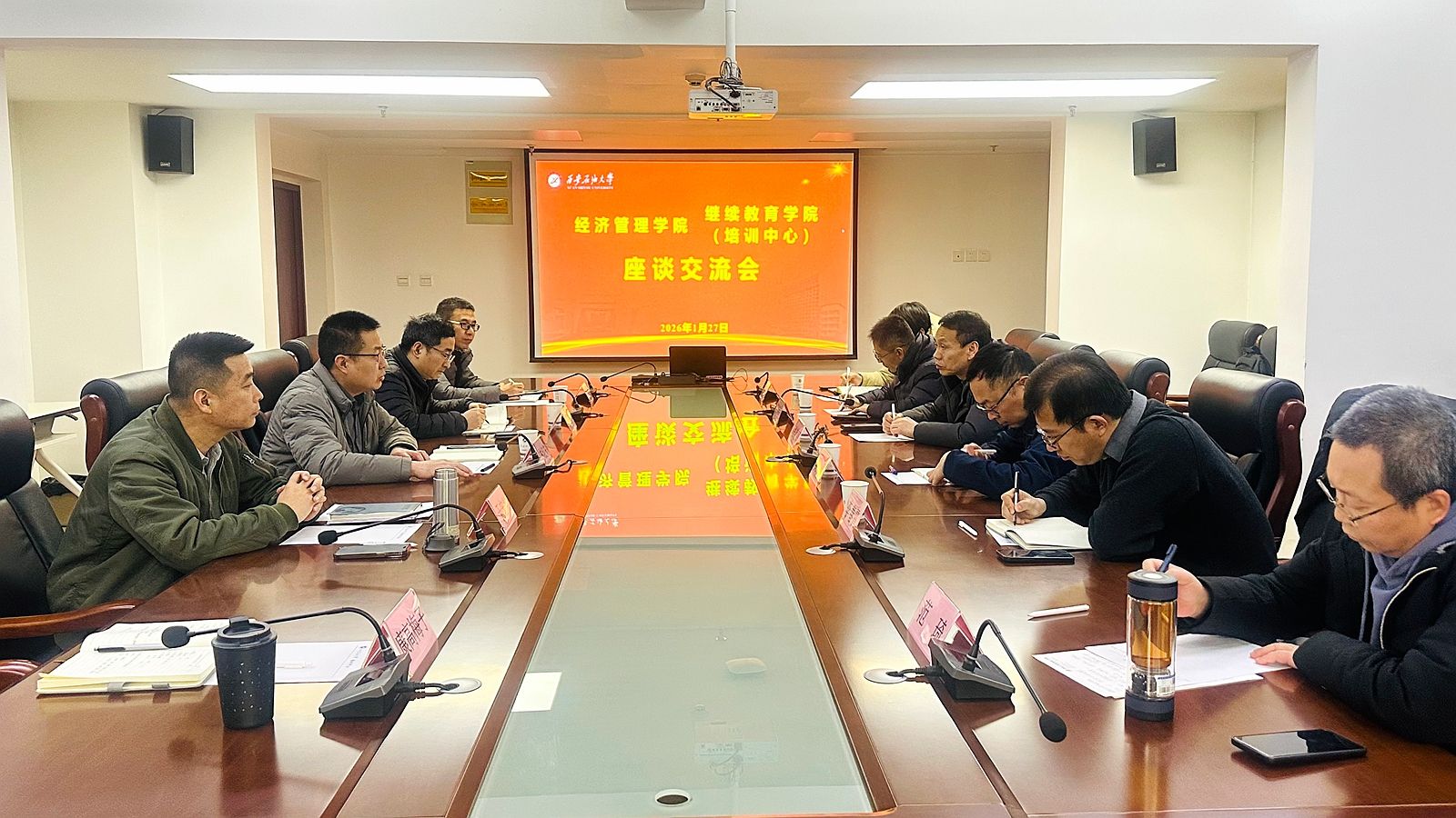 為充分發(fā)揮校內優(yōu)質資源,探索繼續(xù)教育與校內學院教學科研深度融合發(fā)展新模式,1月27日下午,繼續(xù)教育學院(培訓中心)與經濟管理學院在明德校區(qū)召開合作發(fā)展座談交流會。經濟管理學院黨委書記張凌寒、院長吳勛及班子成員,繼續(xù)教育學院(培訓中心)院長(主任)林紅先及班子成員出席座談會。林紅先主持會議。