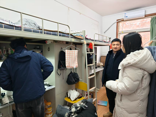 走訪前,董丙劍一行還深入實(shí)驗(yàn)室,與研究生導(dǎo)師交流留校學(xué)生情況。此次走訪檢查與慰問(wèn)交流,既全面排查了宿舍安全隱患、強(qiáng)化了學(xué)生安全防范意識(shí),也拉近了學(xué)院與學(xué)生的距離,精準(zhǔn)掌握了留校生活與就業(yè)求職的真實(shí)情況。下一步,學(xué)院將持續(xù)做好假期留校學(xué)生動(dòng)態(tài)管理與日常關(guān)懷,常態(tài)化開(kāi)展宿舍安全巡查,建立問(wèn)題整改閉環(huán)機(jī)制,同時(shí)針對(duì)性開(kāi)展就業(yè)指導(dǎo)、崗位推送等服務(wù),全力守護(hù)學(xué)生安全與成長(zhǎng)發(fā)展。