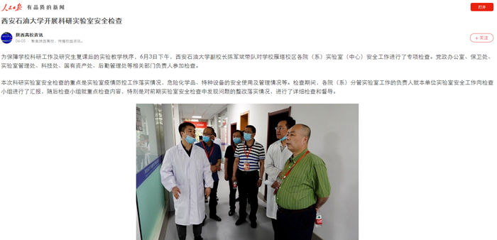 【人民日報(bào)APP】西安石油大學(xué)開展科研實(shí)驗(yàn)室安全檢查