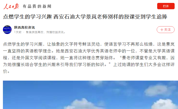 西石大的英語(yǔ)老師都十分優(yōu)秀,景嵐就是其中一位。