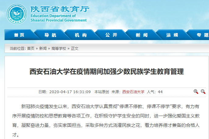 【省教育廳】西安石油大學(xué)在疫情期間加強(qiáng)少數(shù)民族學(xué)生教育管理