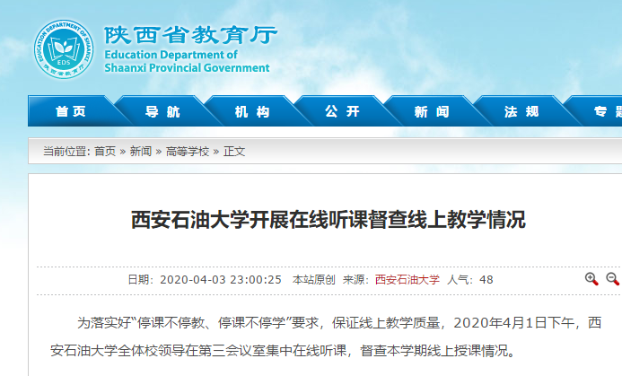 【省教育廳】西安石油大學(xué)開展在線聽課督查線上教學(xué)情況