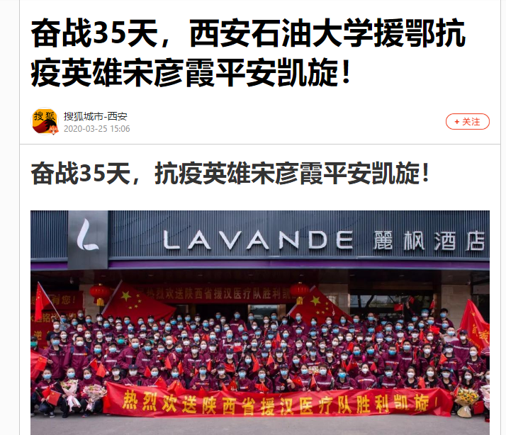 陜西第四批援助湖北醫(yī)療隊返回西安后,將在臨潼鐵道部療養(yǎng)院隔離觀察14天。宋彥霞通過電話表示,在武漢奮戰(zhàn)的35天是一次難得的經(jīng)歷,從此之后對武漢又多了一份牽掛;感謝在這段時間給予關(guān)心、幫助的同事和朋友,使她安心地投入工作;希望隔離觀察結(jié)束后早點回家,多多陪伴家人和孩子。