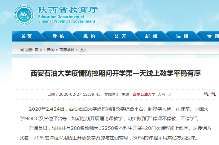 【省教育廳】西安石油大學(xué)疫情防控期間開(kāi)學(xué)第一天線上教學(xué)平穩(wěn)有序
