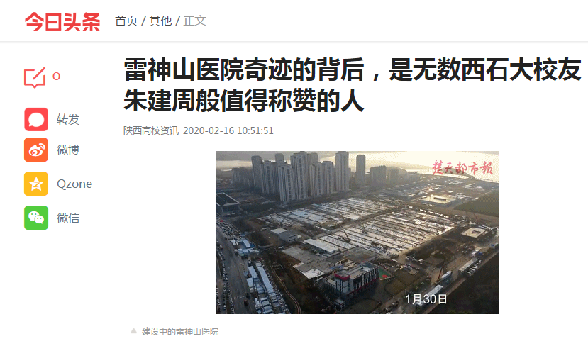 【今日頭條】雷神山醫(yī)院奇跡背后的西石大校友