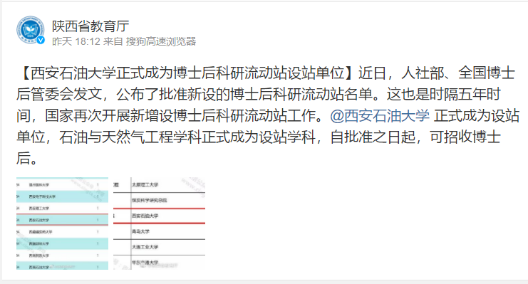 【省教育廳微博】西安石油大學(xué)正式成為博士后科研流動站設(shè)站單位