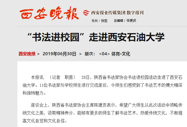 【西安晚報】“書法進(jìn)校園”走進(jìn)西安石油大學(xué)