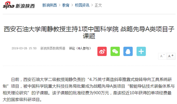 【新浪網(wǎng)】西安石油大學(xué)周靜教授主持1項(xiàng)中國科學(xué)院戰(zhàn)略先導(dǎo)A類項(xiàng)目子課題