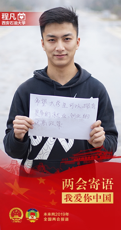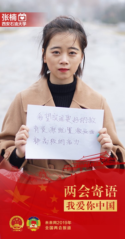 2019年3月,舉世矚目的全國“兩會”即將召開。“未來網(wǎng)”特地推出了“兩會寄語”欄目,我校黨委宣傳部推薦的三名大學(xué)生的寄語被“未來網(wǎng)”采用,與中國人民大學(xué)、廣西大學(xué)等高校大學(xué)生的寄語一起刊發(fā)。