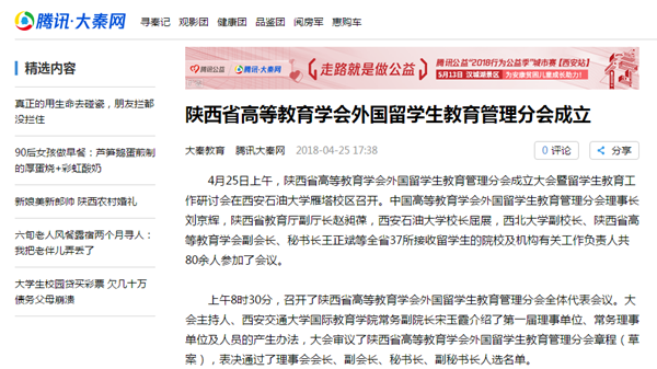 【騰訊大秦網(wǎng)】陜西省高等教育學(xué)會外國留學(xué)生教育管理分會成立