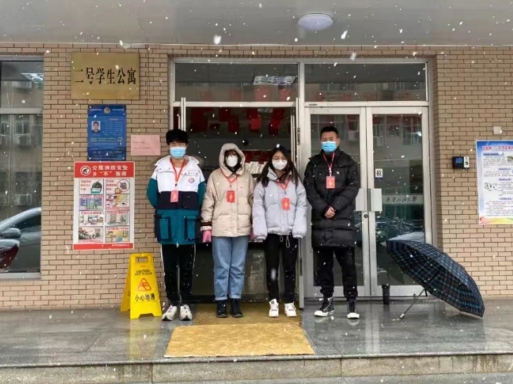 工作中,也有小驚喜。那是2021年的第一場雪,楊寬和其他志愿者早晨六點(diǎn)去西操場參加核酸檢測值守,又緊接著參與宿舍樓、食堂、小吃街值守任務(wù),一直忙到晚上10點(diǎn)鐘,老師們發(fā)現(xiàn)他們還沒吃飯,就趕緊送來了晚飯,楊寬笑著說:“雖然因?yàn)檎镜脮r間太長導(dǎo)致腿腳麻木,但我感到心里面暖洋洋的,那是我吃過最香的一頓晚餐。”