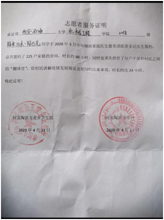 5月份,在不耽誤學(xué)校的網(wǎng)絡(luò)課程的同時(shí),阿米乃木?阿巴克利用課下時(shí)間去當(dāng)?shù)氐拇逦瘯?huì)幫忙,擔(dān)任村民委員會(huì)黨建辦協(xié)管員,準(zhǔn)備黨課資料,整理黨員檔案,錄入智慧黨建系統(tǒng)等工作。在村委會(huì)幫忙的這段日子里,她深深的被身邊各行各業(yè)優(yōu)秀的黨員事跡感動(dòng)著,為了積極向黨組織靠攏,她明確表示回校后將向?qū)W院遞交自己的第一份入黨申請(qǐng)書。