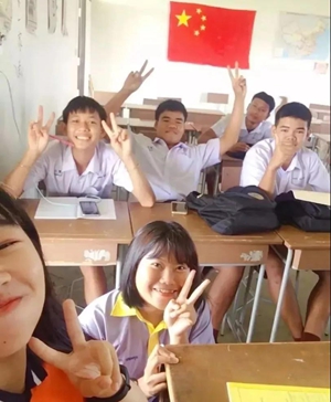 在泰國(guó)四色菊府的Kamphaeng 中學(xué),呂東方給初二、高二和高三大約500名學(xué)生上漢語(yǔ)課。除了教材規(guī)定的內(nèi)容,她會(huì)給孩子們講到中國(guó)的詩(shī)歌文化,還會(huì)帶孩子們體驗(yàn)中國(guó)的各種生活方式。每當(dāng)看到大家對(duì)中國(guó)文化產(chǎn)生喜愛(ài)和向往時(shí),她的心中都是滿(mǎn)滿(mǎn)的驕傲和自豪。