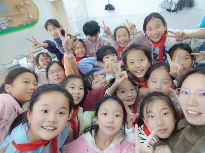 在這彌足珍貴的一年支教的日子里,我站上了我夢寐以求的三尺講臺,每節(jié)課上孩子們那一雙雙眼睛里看到的是知識,而我看到的是純潔與坦誠。這段時間對我來說最大的收獲是擁有了一種強烈而又真實的幸福感和滿足感。這種幸福來源于學生對我的認可與喜愛,是從什么時候開始的呢,是他們問我“老師你明年還帶我們嗎”“老師我們班同學都可喜歡你了”“老師你什么時候走啊”“你走的時候可一定要給我們說,不要偷偷走”的時候,是上課前有學生專門來辦公室找我跟我一起去教室的時候,是我們一起合照的時候孩子們天真而純潔的笑臉,是下課時一群五年級的女生抱著我不讓我走的時候,也許是給二年級上社團活動課,走過二年級的樓道被學生簇擁起來打招呼的時候,這段時間的點點滴滴在我腦海中留下了深刻的烙印。