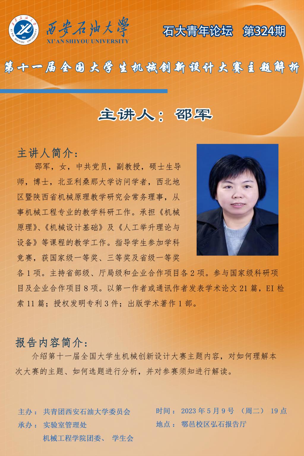 石大青年論壇第324期:第十一屆全國大學(xué)生機(jī)械創(chuàng)新設(shè)計大賽主題解析