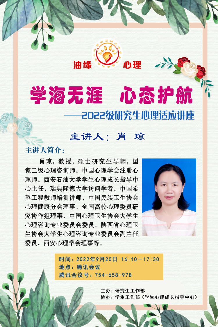 學(xué)海無涯 心態(tài)護(hù)航——2022級(jí)研究生心理適應(yīng)講座