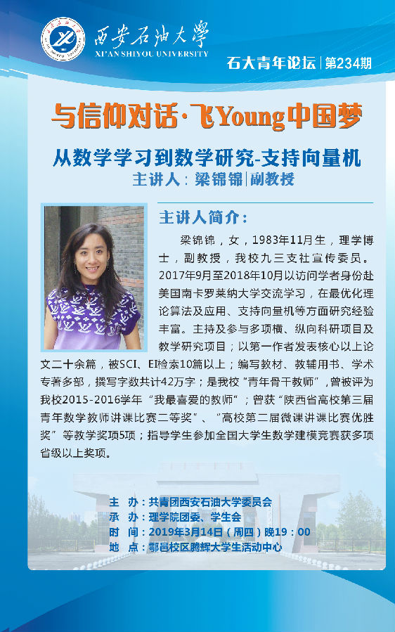 石大青年論壇第234期之:從數(shù)學(xué)學(xué)習(xí)到數(shù)學(xué)研究-支持向量機(jī)