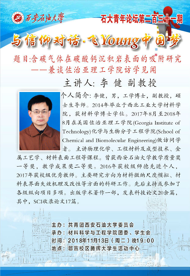 石大青年論壇第231期之:含碳氣體在碳酸鈣沉積巖表面的吸附研究