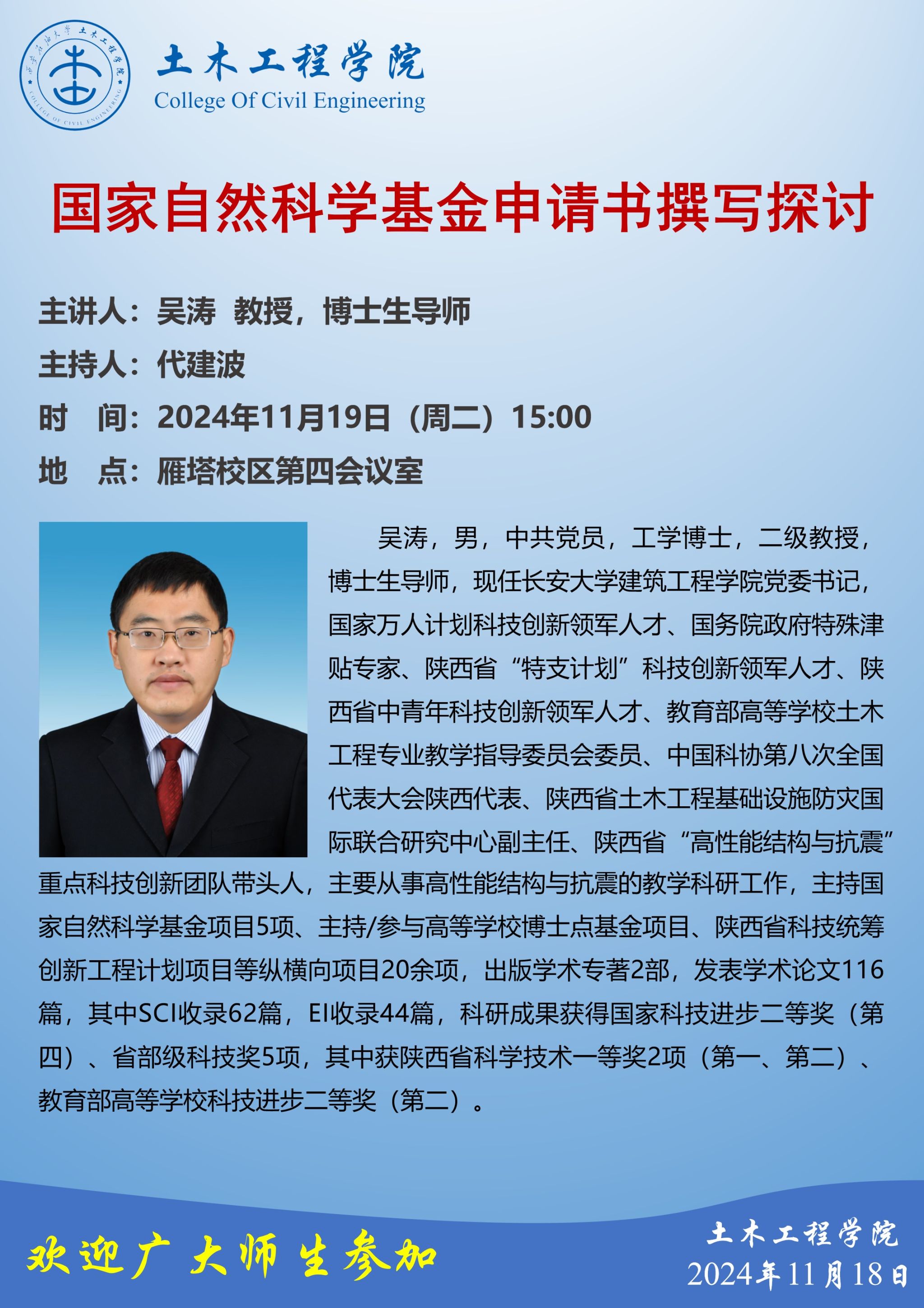 報(bào)告地點(diǎn):鄠邑校區(qū)博覽樓A108