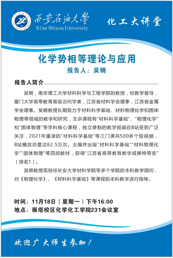 報(bào)告地點(diǎn):雁塔校區(qū)化學(xué)化工學(xué)院231會(huì)議室