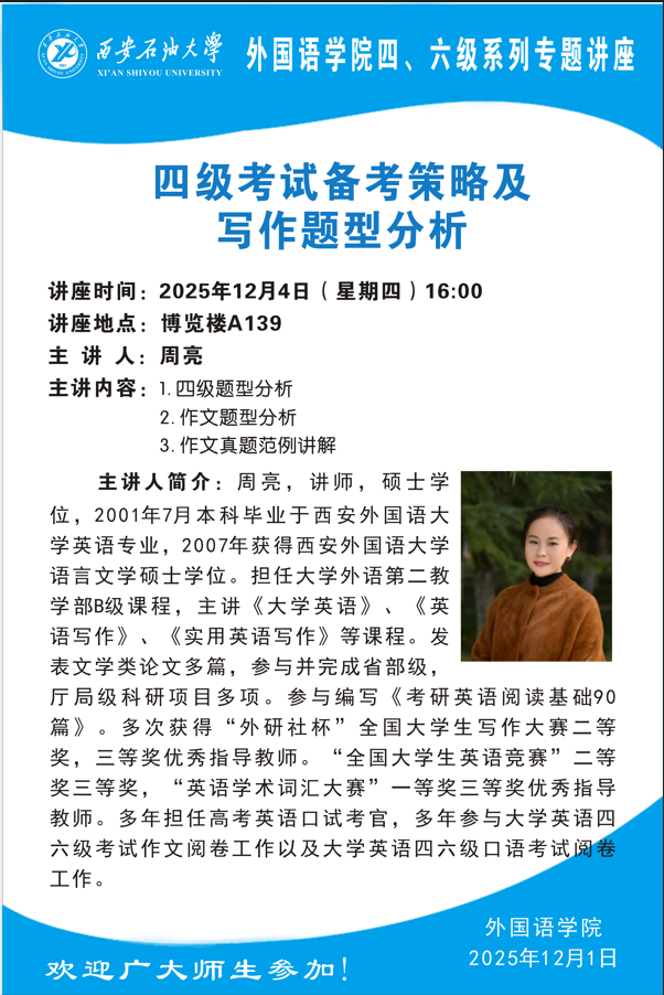 報(bào)告地點(diǎn):鄠邑校區(qū)弘石報(bào)告廳